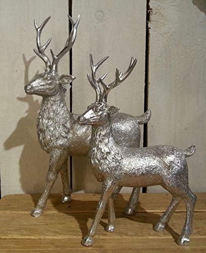 Kwoka Deko Hirsch Silber L 23 5 Cm B 7 5 Cm H 37 Cm Hirschfigur Weihnachtsfigur Dekofigur Winter Advent Weihnachten Amazon De Kuche Haushalt