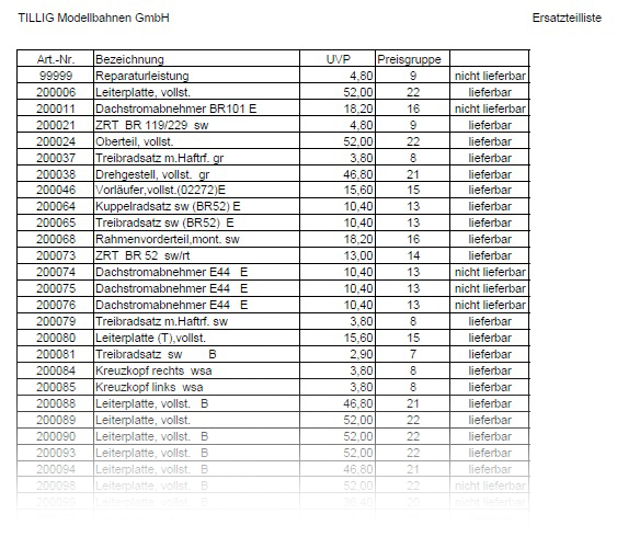 Ersatzteile Tillig Modellbahnen