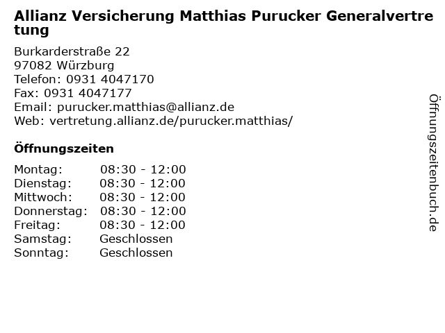 Allianz Versicherung Wurzburg Dr Jur W Sax Inh Uwe Kuchenmeister Offnungszeiten In Wurzburg Steinbachtal Steinbachtal 61 Findeoffen Deutschland