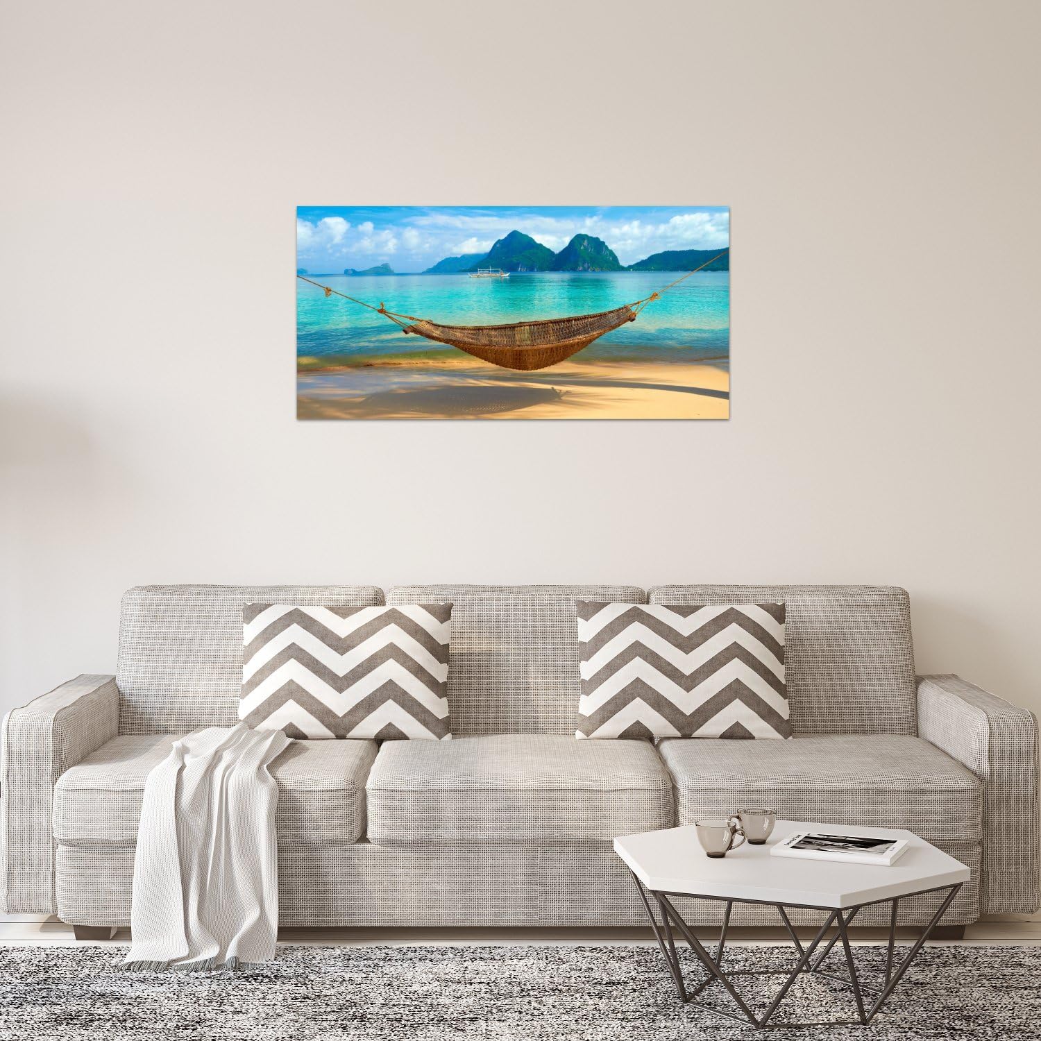 Glasbilder Wandbild Flur Bilder Wohnzimmer Wanddeko Einteilig 30x30 Cm Dekoglas Glasbild Hangematte Am Strand Acrylglas Bild Kuche Kuche Haushalt Wohnen