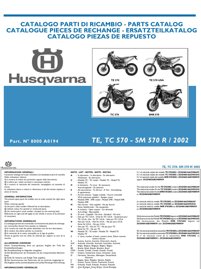 Husqvarna Te Tc Sm 570 R 2002 Parts List Www Manualedereparatie