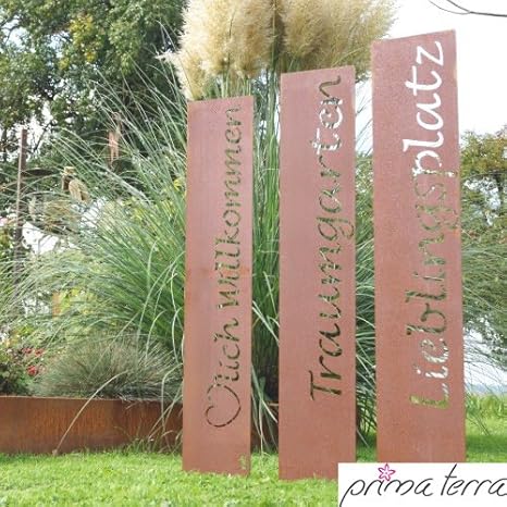 Stele Willkommen H75cm Garten Deko Rost Rostdeko Edelrost Garten Schild Braun Levandeo