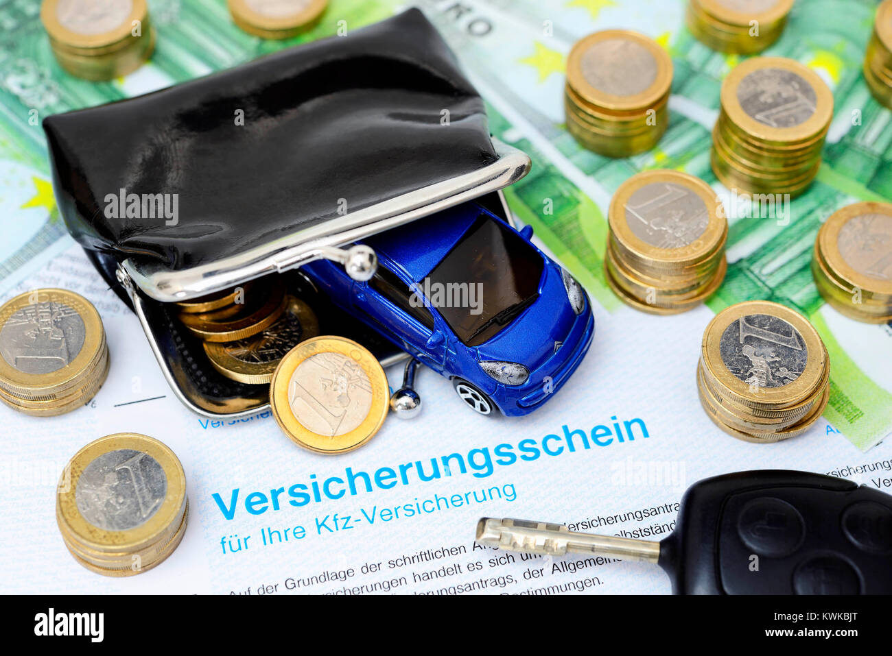 Miniature Car In The Purse And Insurance Policy Vehicle Assurance Stock Photo Alamy