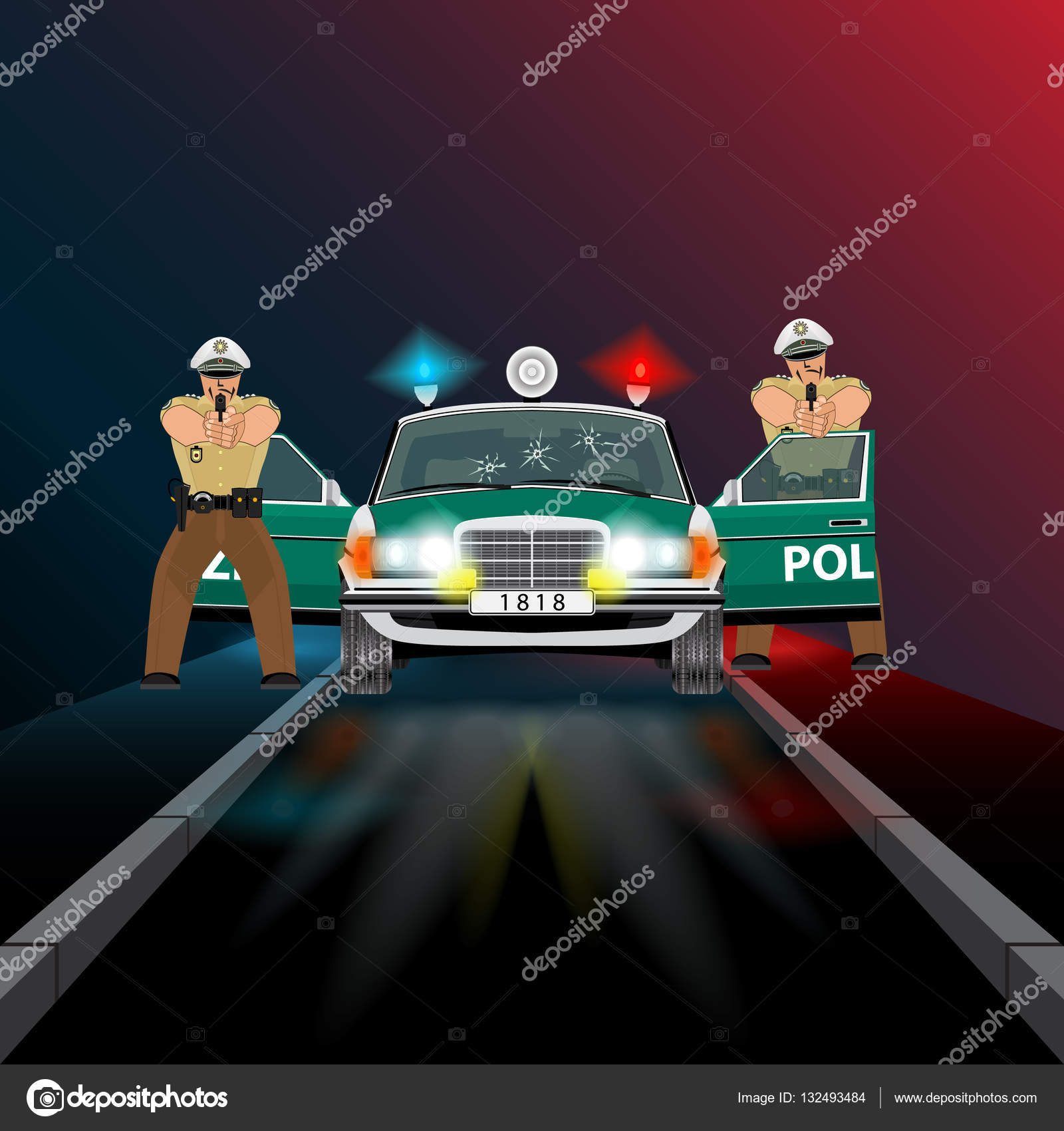 German Police Officer Uniform Police Car Police Policeman With A Gun In Uniform Officer Brigade And Rescue Team German Police Detention Burning Lights Lighthouses Shot On Car Glass Stock Vector C