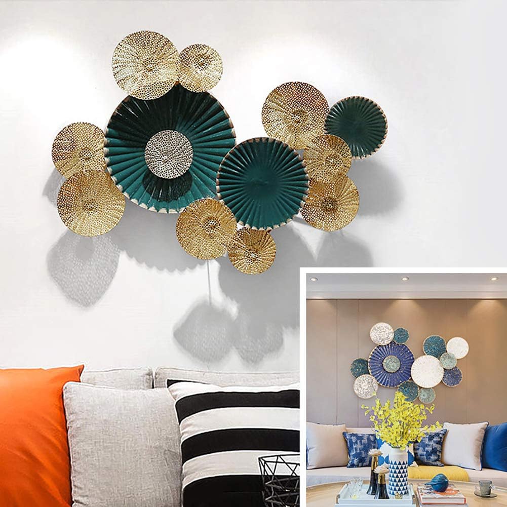 Wlher Metall Wandbehang Wanddekoration Laminierte Lotus Blattform Kreativer Heller Metall Haupt Wandbehang Tv Wanddekoration Grun Gold 74 5 52cm Skulpturen Wandskulpturen